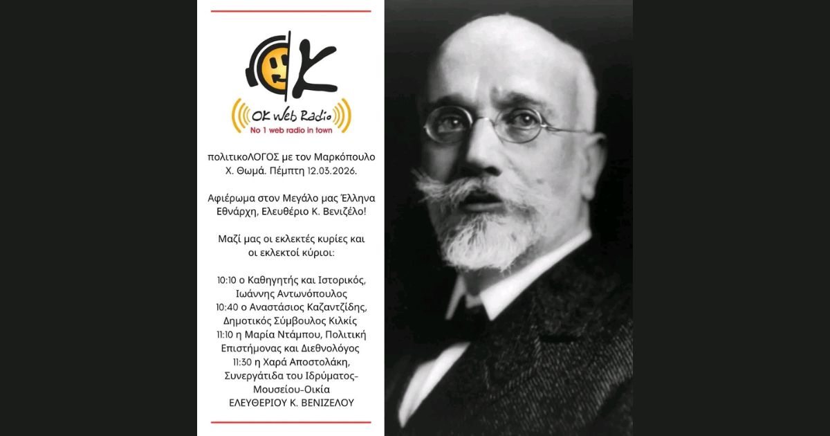 Ο Θωμάς Χ. Μαρκόπουλος και η ραδιοφωνική εκπομπή του πολιτικοΛΟΓΟΣ, στο ΟΚ Radio: φιλοξενούν την Πέμπτη 12 Μαρτίου, 10 – 12 το πρωί, ένα αφιέρωμα στον Μεγάλο μας Έλληνα, Εθνάρχη, Ελευθέριο Κ. Βενιζέλο…